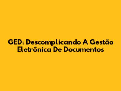 GED: Descomplicando A Gestão Eletrônica De Documentos