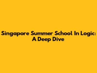 Singapore Summer School In Logic: A Deep Dive