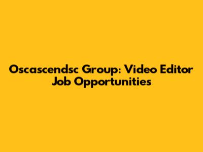 Oscascendsc Group: Video Editor Job Opportunities