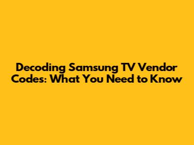 Ever wondered what those cryptic codes on your Samsung TV box or in the service menu actually mean? Well, guys, you're in the right place! Understanding your Samsung TV vendor code can unlock a wealth of information about its origin, panel type, and other key specifications. This knowledge can be super helpful whether you're troubleshooting issues, comparing models, or just satisfying your curiosity. This article will dive deep into the world of Samsung TV vendor codes, breaking down their structure and explaining how to interpret them like a pro. So, buckle up and get ready to decode your TV!