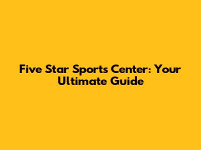 Five Star Sports Center: Your Ultimate Guide