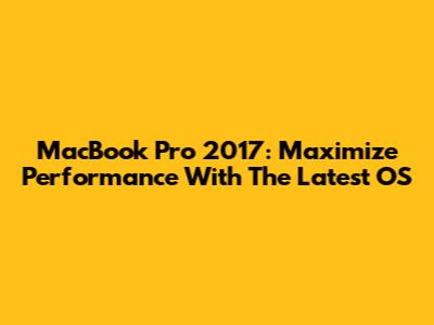 MacBook Pro 2017: Maximize Performance With The Latest OS