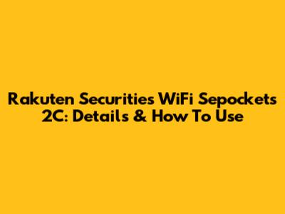 Rakuten Securities WiFi Sepockets 2C: Details & How To Use