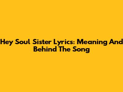 Hey Soul Sister Lyrics: Meaning And Behind The Song