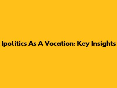 Ipolitics As A Vocation: Key Insights