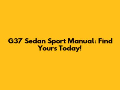G37 Sedan Sport Manual: Find Yours Today!