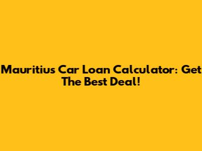 Mauritius Car Loan Calculator: Get The Best Deal!