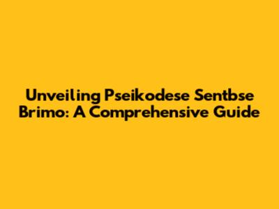 Unveiling Pseikodese Sentbse Brimo: A Comprehensive Guide