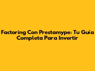 Factoring Con Prestamype: Tu Guía Completa Para Invertir