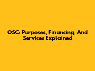 OSC: Purposes, Financing, And Services Explained