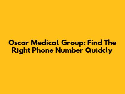 Oscar Medical Group: Find The Right Phone Number Quickly