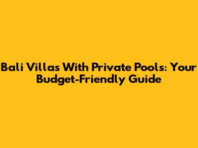 Bali Villas With Private Pools: Your Budget-Friendly Guide