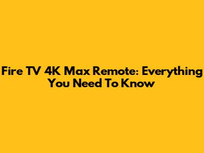 Fire TV 4K Max Remote: Everything You Need To Know
