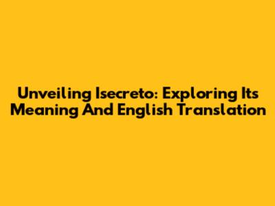Unveiling 'Isecreto': Exploring Its Meaning And English Translation