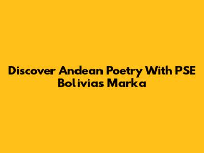 Discover Andean Poetry With PSE Bolivia's Marka