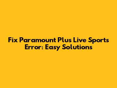Fix Paramount Plus Live Sports Error: Easy Solutions