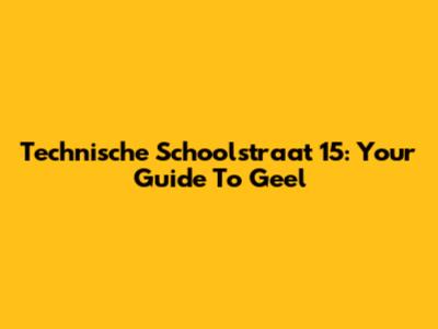 Technische Schoolstraat 15: Your Guide To Geel