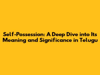 Hey everyone! Today, let's dive into something super important: self-possession. We'll explore what it means, not just in general, but specifically, what it translates to and signifies in Telugu. Get ready to unlock a deeper understanding of this crucial life skill. Self-possession is like having an internal compass that guides you. It’s about staying cool, calm, and collected, especially when things get tough. Think of it as your inner anchor, preventing you from getting tossed around by the storms of life. It’s a quality that helps you make smart decisions, handle stress, and relate to others in a positive way. We're going to break down the concept, look at how it manifests in Telugu culture, and why it's such a valuable trait to cultivate. Self-possession is more than just a buzzword; it’s a cornerstone of emotional intelligence and overall well-being. It is the ability to maintain composure, rationality, and control over one's emotions, actions, and thoughts, particularly in challenging or stressful situations. This means you're able to think clearly, make sound judgments, and react thoughtfully rather than impulsively. It's about being present in the moment and not letting external factors dictate your inner state. Understanding and practicing self-possession can significantly improve your personal and professional life. This quality helps to navigate difficult conversations, make effective decisions under pressure, and build stronger relationships. Cultivating self-possession is an ongoing process that involves self-awareness, emotional regulation, and mindful practice. It is not about suppressing emotions but rather understanding and managing them effectively. In the Telugu language and culture, this concept has a rich and nuanced interpretation. Let's delve into how Telugu speakers understand and express this vital characteristic.
