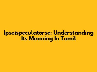 Ipseispeculatorse: Understanding Its Meaning In Tamil