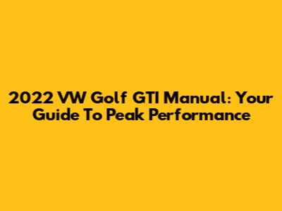 2022 VW Golf GTI Manual: Your Guide To Peak Performance
