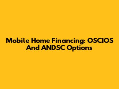 Mobile Home Financing: OSCIOS And ANDSC Options