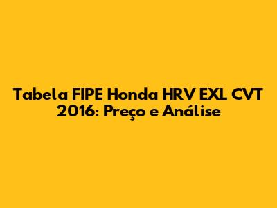 Tabela FIPE Honda HRV EXL CVT 2016: Preço E Análise