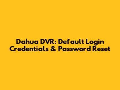 Dahua DVR: Default Login Credentials & Password Reset