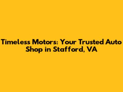 Hey guys! Looking for a reliable auto shop in Stafford, Virginia? You've probably heard of Timeless Motors. Let's dive deep into what makes them a go-to spot for car owners, focusing on everything from their services to their stellar reputation. Because who doesn't want to keep their ride in top-notch condition, right?