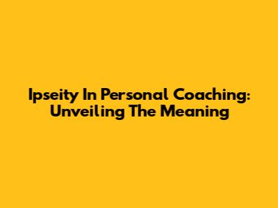Ipseity In Personal Coaching: Unveiling The Meaning