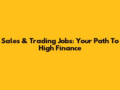 Sales & Trading Jobs: Your Path To High Finance