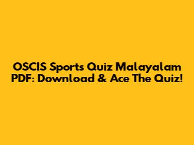 OSCIS Sports Quiz Malayalam PDF: Download & Ace The Quiz!