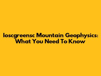 Ioscgreensc Mountain Geophysics: What You Need To Know