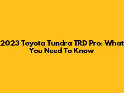 2023 Toyota Tundra TRD Pro: What You Need To Know